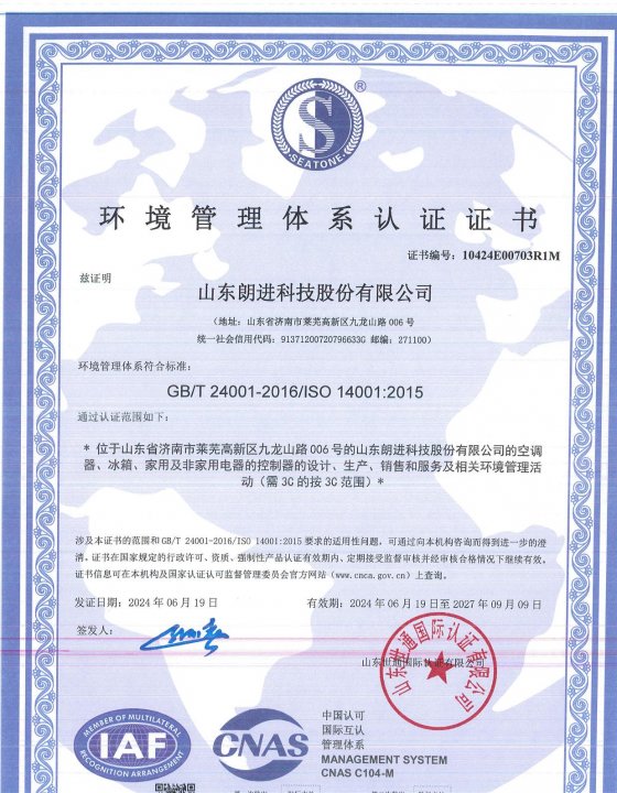 ISO14001環(huán)境管理體系認證證書