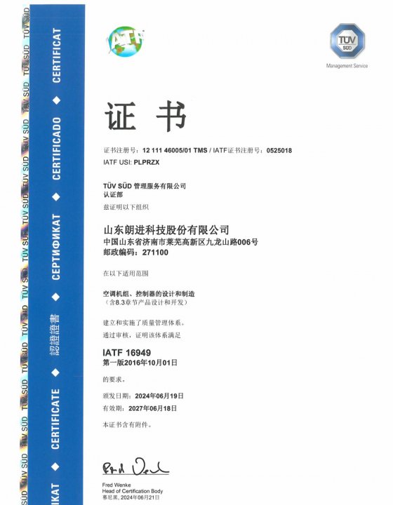 IATF16949汽車管理體系認證證書